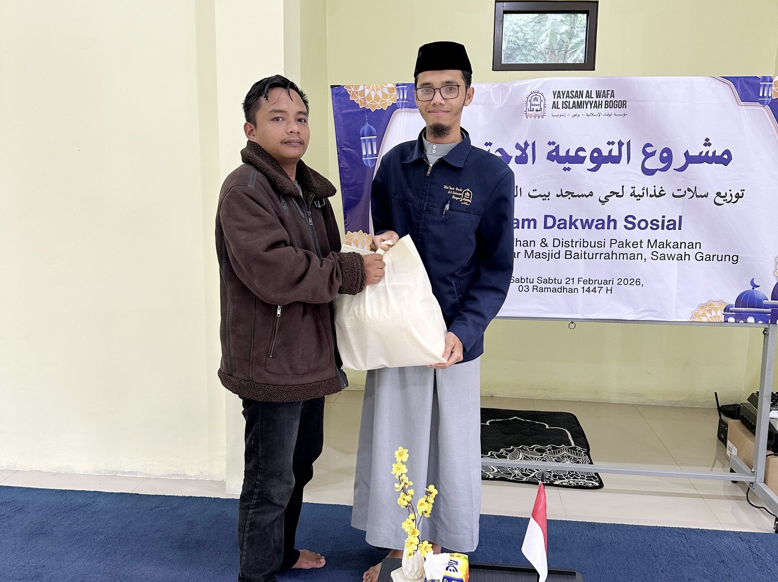 Bulan Ramadhan merupakan momentum emas bagi setiap Muslim untuk melipatgandakan amal salih, baik yang bersifat vertikal kepada Allah Subhanahu wa Ta'ala maupun horizontal melalui kepedulian antarsesama. Mengambil keberkahan di awal Ramadhan 1447 H ini, Yayasan Al Wafa Al Islamiyyah Bogor kembali merealisasikan komitmennya dalam khidmah kemasyarakatan melalui Program Dakwah Sosial.