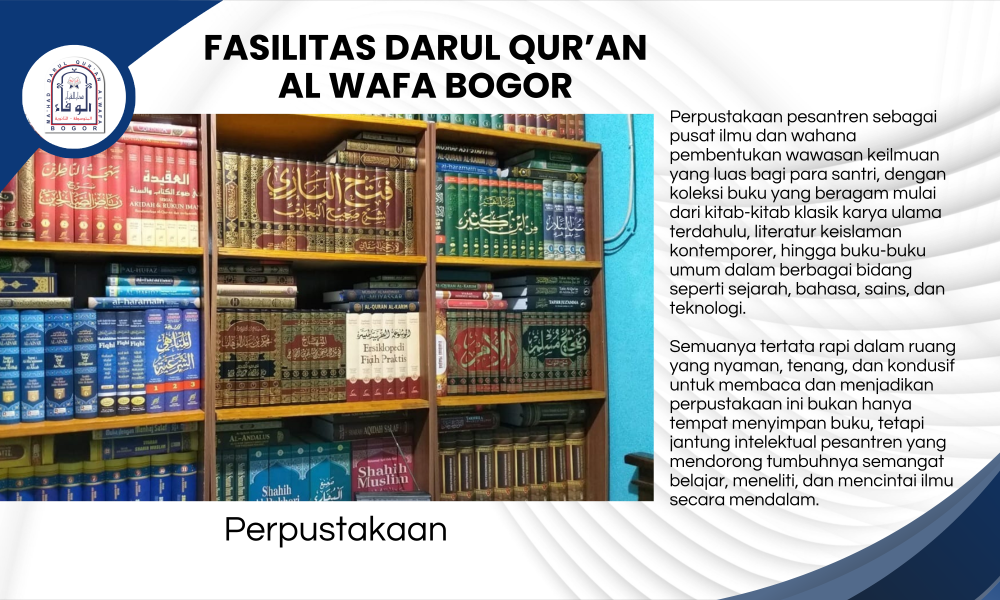 Mahad Darul Qur’an Al-Wafa Bogor berdiri megah di kawasan Tamansari, Kabupaten Bogor, sebuah wilayah yang dikelilingi oleh hijaunya alam, udara pegunungan yang segar, dan jauh dari hiruk-pikuk perkotaan.