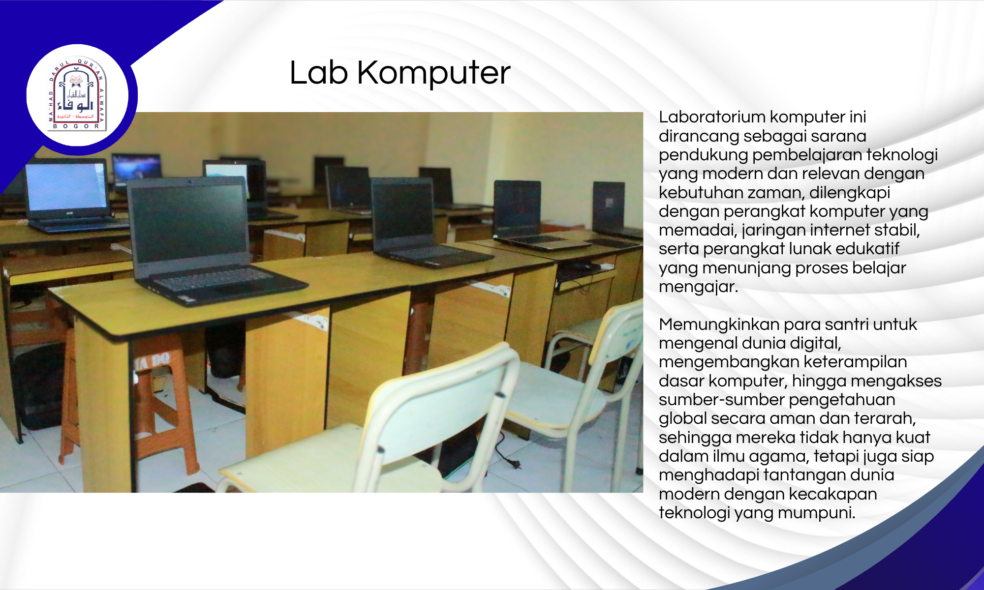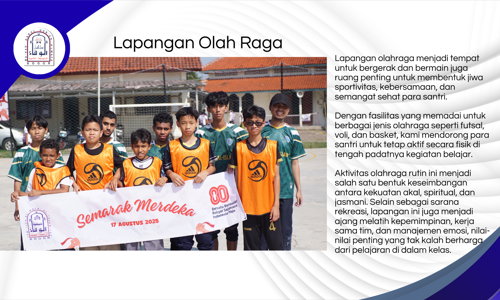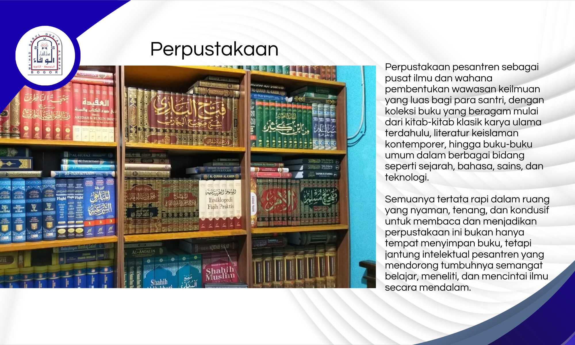 Mahad Darul Qur’an Al-Wafa Bogor berdiri megah di kawasan Tamansari, Kabupaten Bogor, sebuah wilayah yang dikelilingi oleh hijaunya alam, udara pegunungan yang segar, dan jauh dari hiruk-pikuk perkotaan.